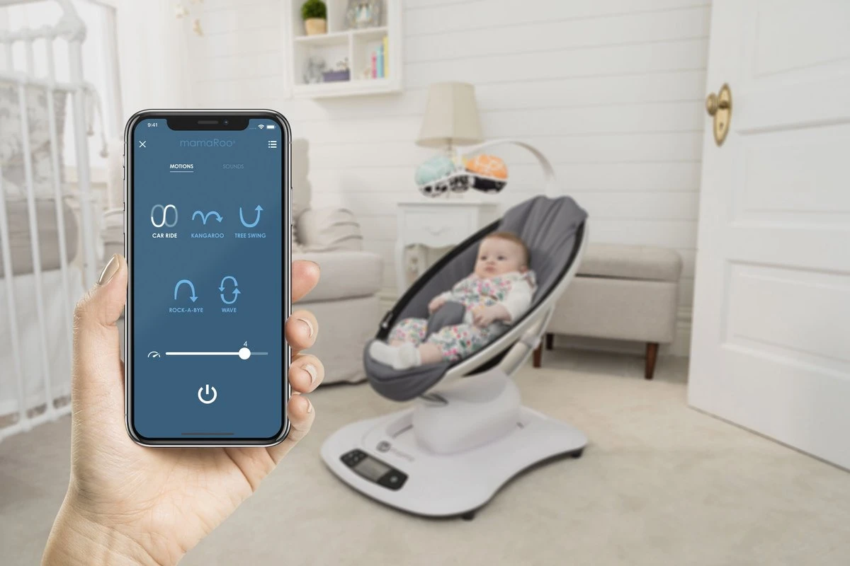 De schommelstoel MamaRoo4van het merk 4Moms is perfect in staat om de natuurlijke beweging van een ouder na te bootsen.