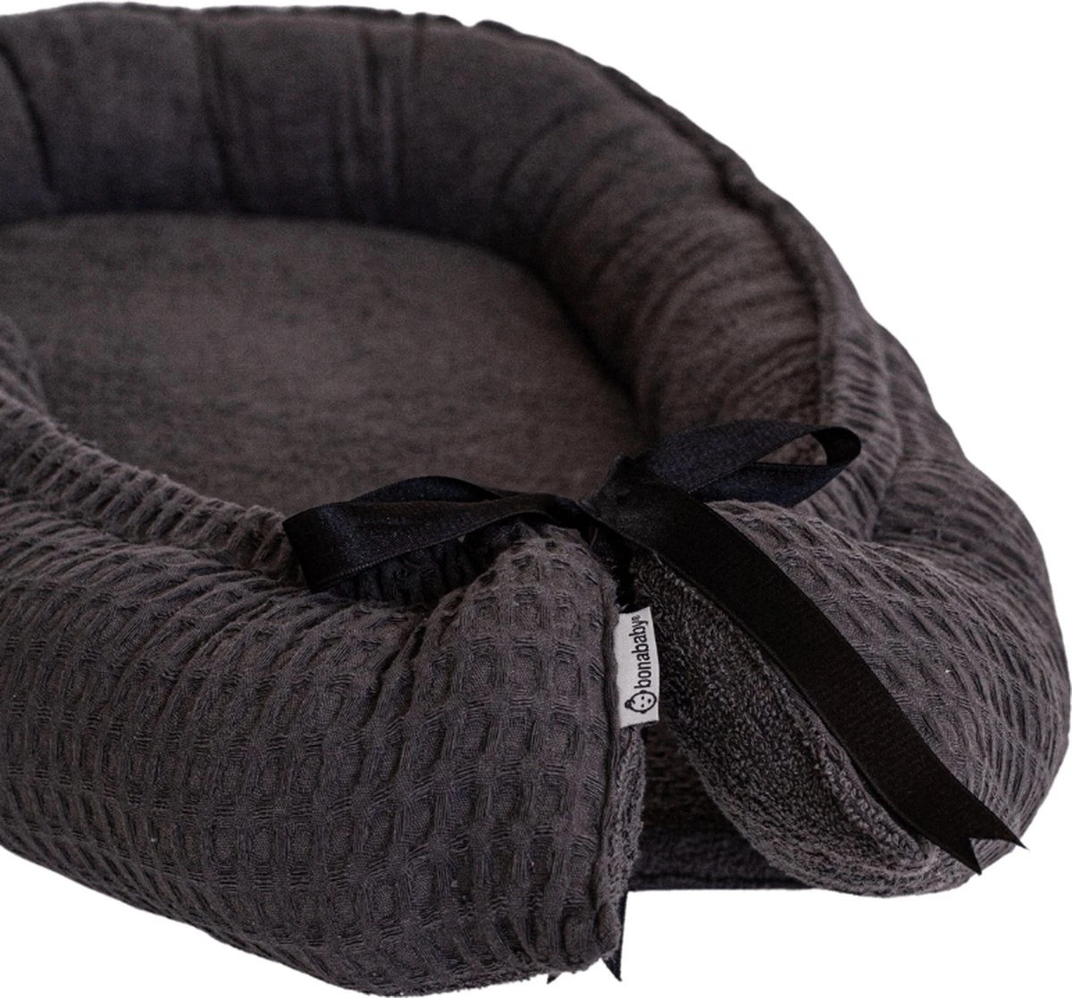 In de rand van het nestje zit een touwtje, waarmee je de maat helemaal kan aanpassen op jouw baby. Je baby voelt zich hierdoor geborgen, net als bij inbakeren. Een vertrouwd gevoel, net als toen hij veilig in de baarmoeder zat.