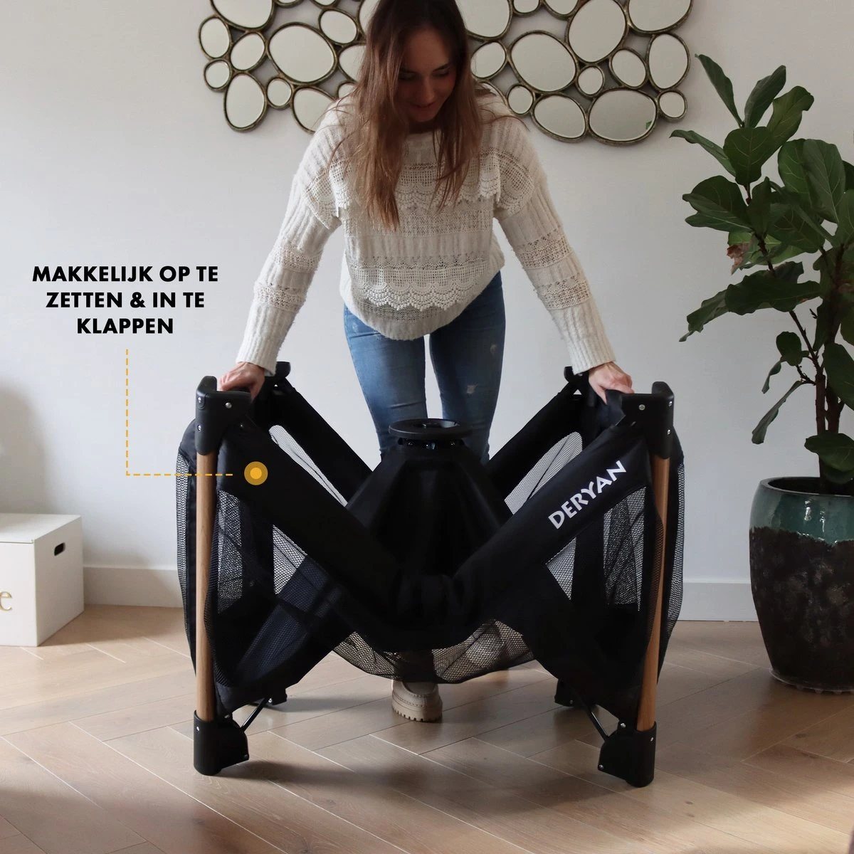 Het campingbed is voorzien van ventilerend gaas aan alle kanten, waardoor je jouw kindje altijd in de gaten kunt houden.