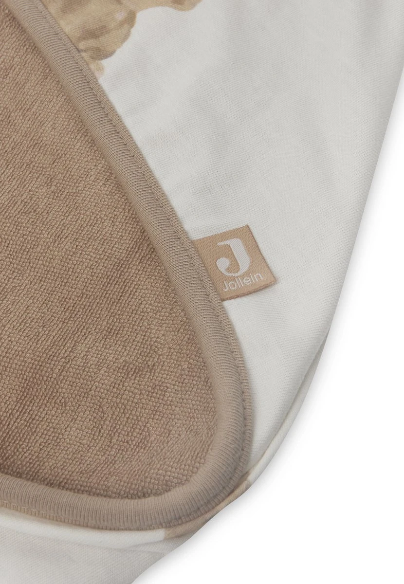 Na het badderen of zwemmen is deze badcape ideaal. Je wikkelt je baby direct warm in zodra hij uit het water komt. Met de capuchon bedek je het hoofd waardoor het daar ook geen warmte verliest. Comfortabel voor je baby! De badcape is gemaakt van 100% badstof katoen. De buitenkant is gemaakt van 100% Jersey. De zachte stof is mild voor de tere babyhuid en neemt goed vocht op waardoor het afdrogen in een mum van tijd klaar is. Na gebruik hang je de cape gemakkelijk op aan het lusje. De badcape heeft een afmeting van 75x75cm. Kleur de badcape heeft een super schattig printje van Teddy beertje. Liever zonder printje? Jollein verkoopt ook badcapejes zonder print!