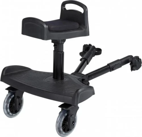 Met dit Kidsriver Universeel Meerijdplankje Met Zitting kan je zonder zorgen op pad met je kindje. Je kan het plankje eenvoudig bevestigen aan de kinderwagen of buggy en het zit niet in de weg tijdens het lopen. Het plankje is ideaal voor mensen die meerdere kinderen hebben, waarvan het ene kind op met meerijdplankje staat en het andere kind in de kinderwagen zit. Wanneer je kindje vermoeid raakt van het lopen, kan hij of zij rustig bijkomen op het meerijdplankje met zitje. Zo kan je langere stukken afleggen met de kinderwagen. Als je kindje liever op het plankje staat, dan verwijder je gemakkelijk het zitje.