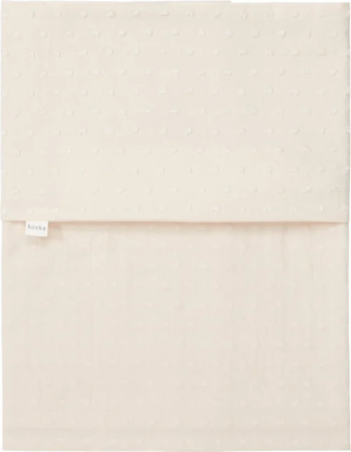 Koeka wieglakens zijn gemaakt van 100% katoen en voelen daarmee lekker fris en crispy aan. Alle lakentjes combineren perfect met de verschillende Koeka wiegdekens. Door de kleine details op deze lakens kan je de wieg van je baby naar eigen smaak stylen. Kies verschillende lakens en geef je babykamer snel een andere look!Speels en romantisch; de subtiel tone-in-tone geborduurde bolletjes creëren de uitstraling van deze stof. Napa is zacht en luchtig en gemaakt van 100% katoen.De afmeting van dit product is 100x80cm.