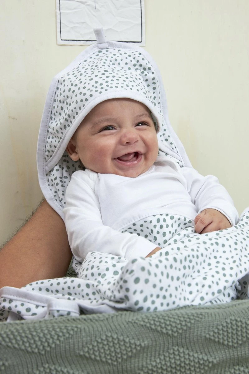 Pak je kindje lekker in na het badje, douche of zwemmen met de Meyco Baby Badcape Basic Jersey Cheetah. Je slaat de cape aan twee kanten om het lijfje en de capuchon over het hoofdje, waardoor je kindje zich heerlijk warm en geborgen voelt.