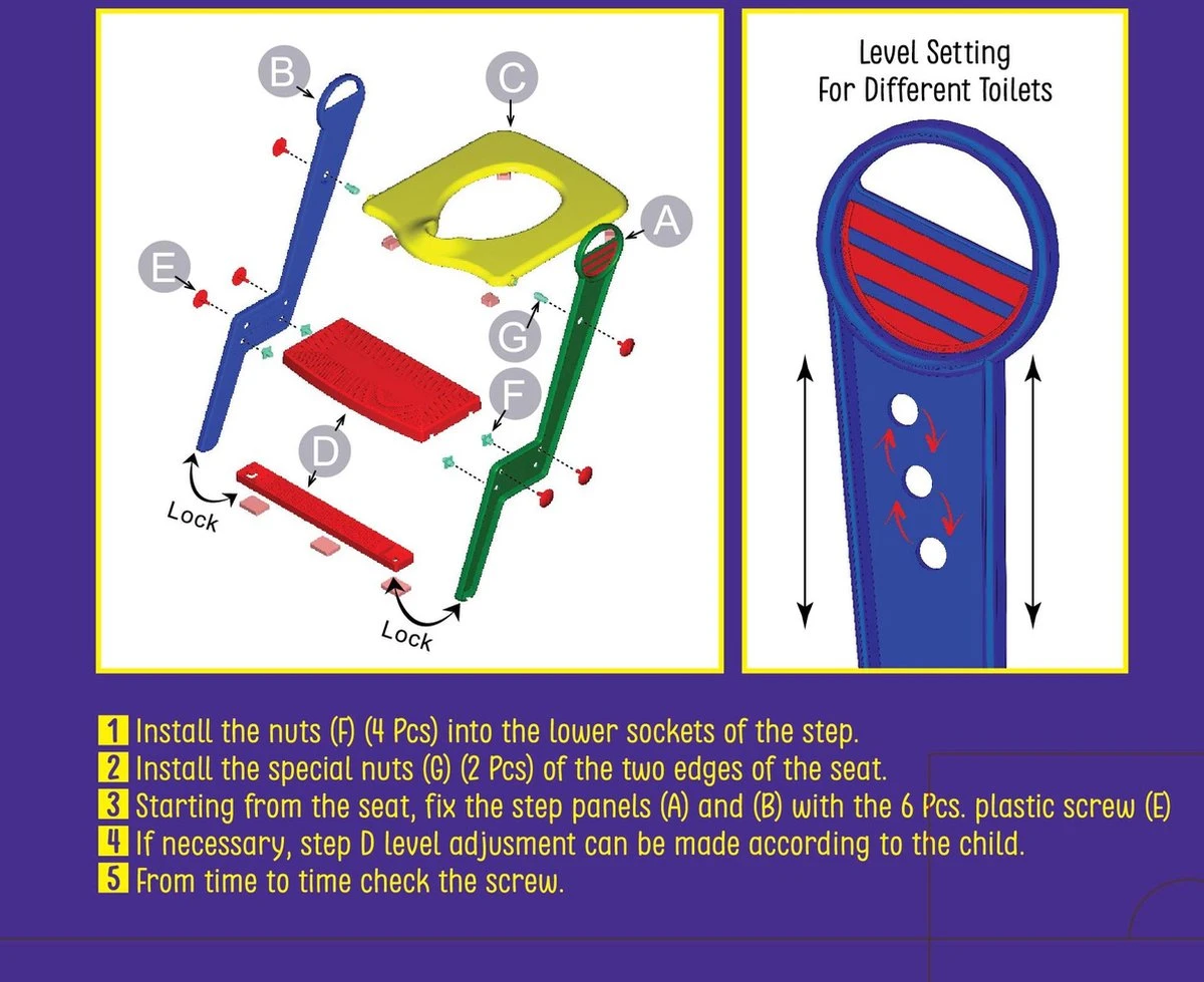 Is het tijd dat jouw zoon of dochter uit de luiers gaat? Kies dan ook voor toilettrainer van Motek®. Het stevige trapje geeft kinderen een veilig gevoel zodat zij zich helemaal op hun gemak voelen. Binnen een mum van tijd zul je progressie zien. De toilettrainer is geheel verstelbaar en geschikt voor de meeste toiletten. Dankzij de anti-slip functie staat het trapje zeer stevig en geeft veel grip. Tevens is het de trainer opvouwbaar en makkelijk op te bergen of mee te nemen. Help je kind op een leuke en veilige manier zijn of haar eerste stapjes te zetten op weg naar zindelijkheid en zelfstandigheid!
