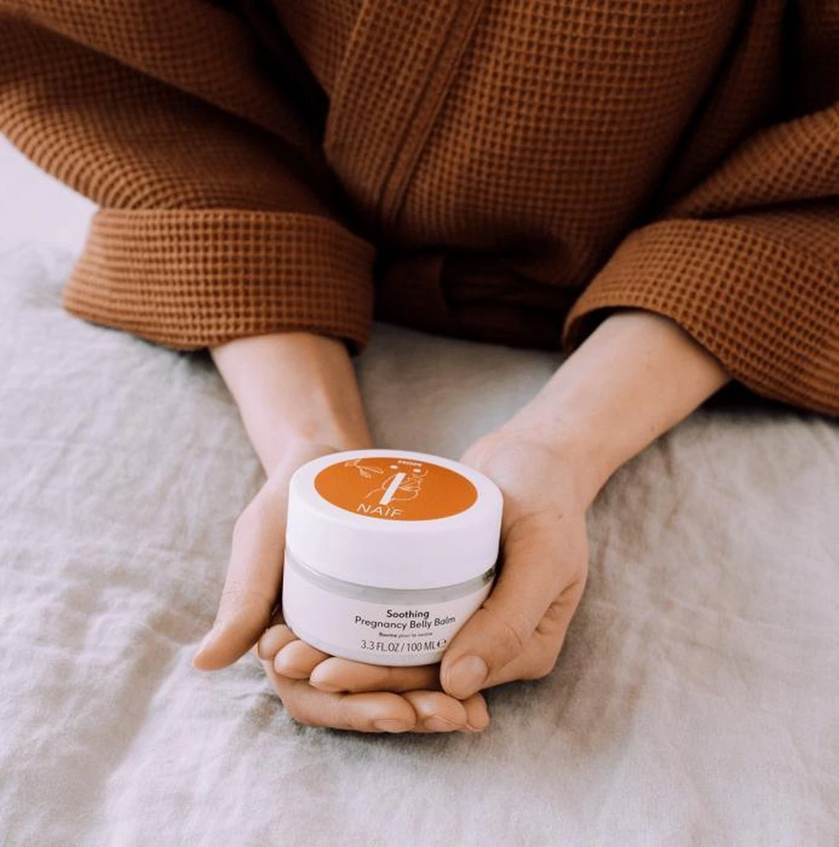 Creëer een ontspan-momentje met de Naif kalmerende zwangerschapsbalm. Houdt de huid van je groeiende buik soepel, gevoed én gehydrateerd met sheabutter en sesamolie.