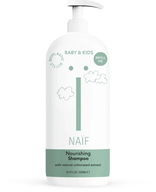 Naïf Voedende Shampoo voor baby’s en kids, met natuurlijke conserveringsmiddelen. De milde shampoo prikt niet in de ogen. De shampoo reinigt en verzacht.