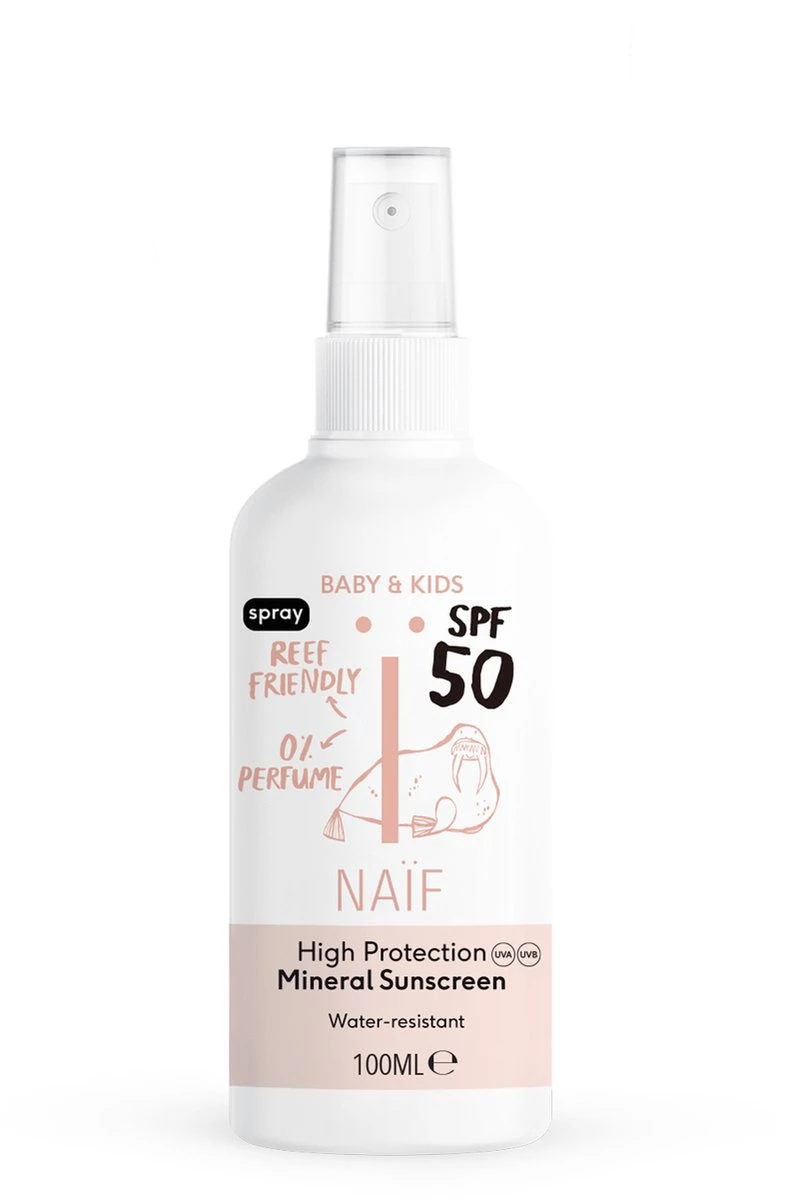 Ook fijn: deze spray is vrij van parfum. Dat maakt ‘m éxtra geschikt voor éxtra gevoelige babyhuid. We adviseren baby’s met name het eerste jaar zoveel mogelijk uit de zon te houden. Mocht het toch voorkomen, is Naïf Zonbescherming ook veilig te gebruiken voor de gevoelige huid van pasgeboren baby’s.