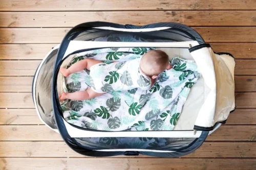 Deryan Luxe Campingbed Compleet – 120x60cm – Bodemverhoger – Verschoonblad – Opbergmand – Zwart