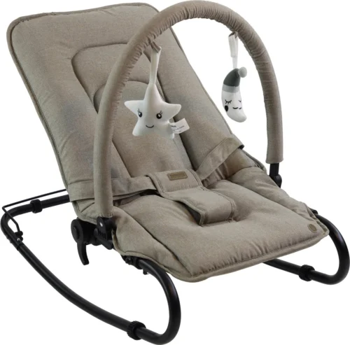 De Topmark Wipstoel Jessy wordt geleverd met fraaie speelboog en heeft een anatomisch gevormd zitdeel met gepolsterde zijvlakken voor extra comfort. Daarnaast heeft de stoel antislip-vloerbeschermers, een traploos verstelbare rugleuning en voetensteun. Dankzij de schommelstand begint het stoeltje al te wiebelen bij een kleine beweging van je kindje. De bekleding van de Topmark Wipstoel Jessy (incl. Boog) is eenvoudig afneembaar en wasbaar in de wasmachine.